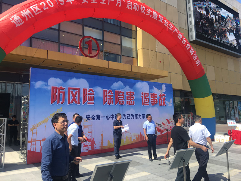 通州區進行安全生產月動員活動,活動分為啟動儀式、教育培訓、演練、咨詢,活動得到政府大力支持。