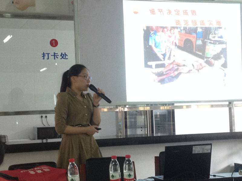 培訓(xùn)首先從一部發(fā)人深省的警示片開始,片中很多安全事故都是與我們?nèi)粘Ia(chǎn)密切相關(guān)的,很多儀器設(shè)備,工具機械都是我們?nèi)粘J褂玫模瑓⒓优嘤?xùn)的人員開始都是抱著看看的態(tài)度,但一起起血淋淋的事故,使得大家都心情沉重,同時也深有感觸,之后的培訓(xùn)中,參加培訓(xùn)的人員都非常認真。培訓(xùn)正式開始后,安監(jiān)趙含煙為我們講述了一些日常的傷害,日常生產(chǎn)生活的常見危險危害因素,以及事故的預(yù)防對策,這些都是和員工息息相關(guān)的,趙含煙通過圖片與員工互動,幫助大家識別生產(chǎn)中的危險危害因素以及一些案例中錯誤的做法,形象的為員工展示了此次培訓(xùn)中講述的要點。接著為我們培訓(xùn)的是消防大隊的管軍隊長,管隊長之前也為我們公司領(lǐng)導(dǎo)層培訓(xùn)過消防安全知識,此次培訓(xùn)管隊長深入淺出,通過視頻及現(xiàn)場指導(dǎo),為參加培訓(xùn)的人員展示了遇到火災(zāi)時應(yīng)該注意的事項。最后由通州區(qū)紅十字會邱燕楠為我們進行了一些救護知識培訓(xùn),這些都是在關(guān)鍵時刻可以救命的技能,公司員工積極參與,用紅十字會帶來的模擬人型積極上臺演示急救。
